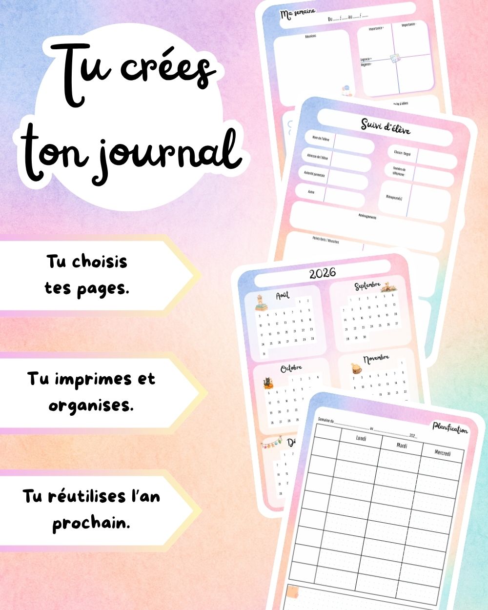 Un journal de prof à composer, pour organiser, suivre et prendre du recul en douceur.